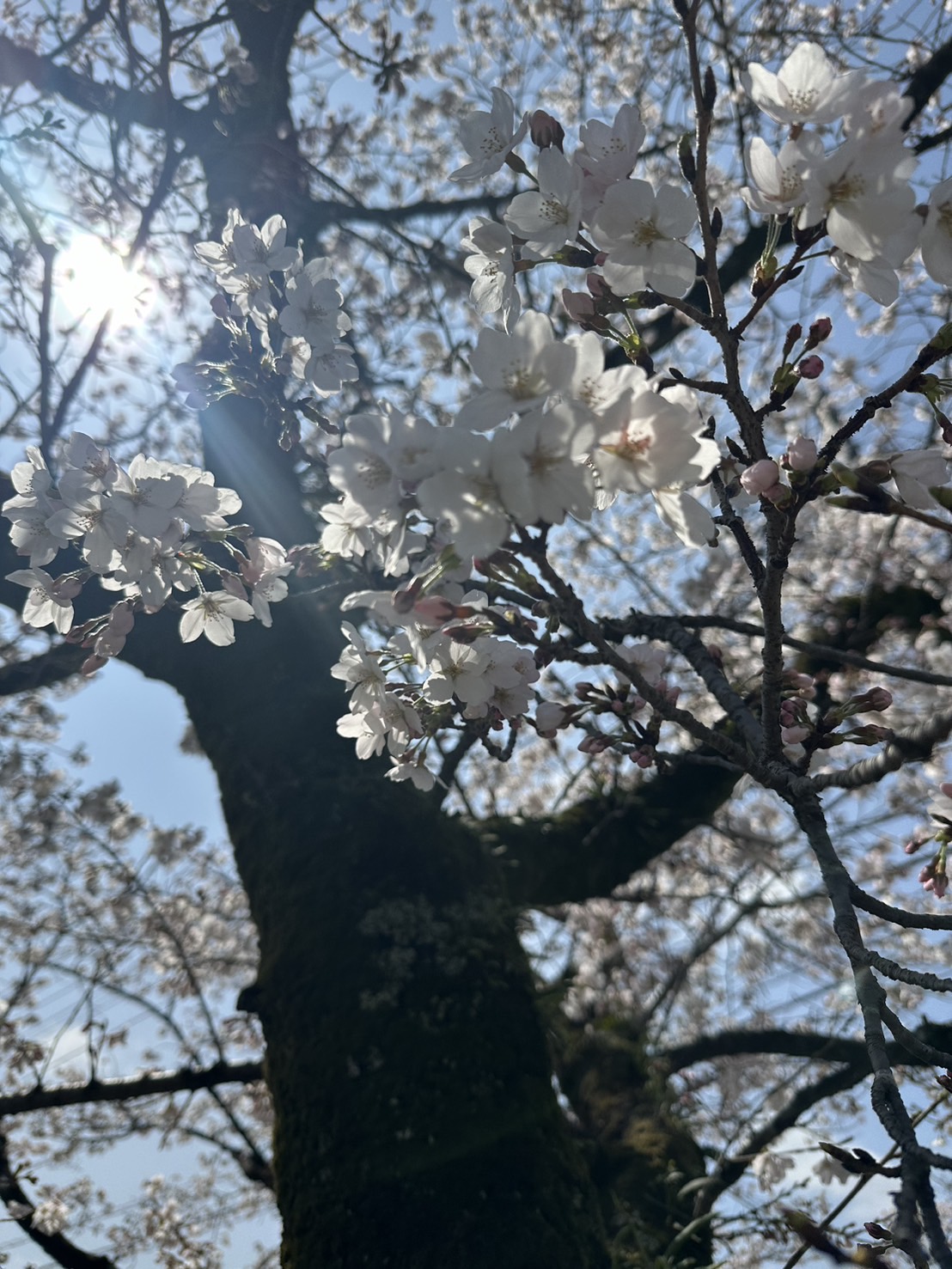 今日は家族で天気がいいので、桜を見に出かけました。