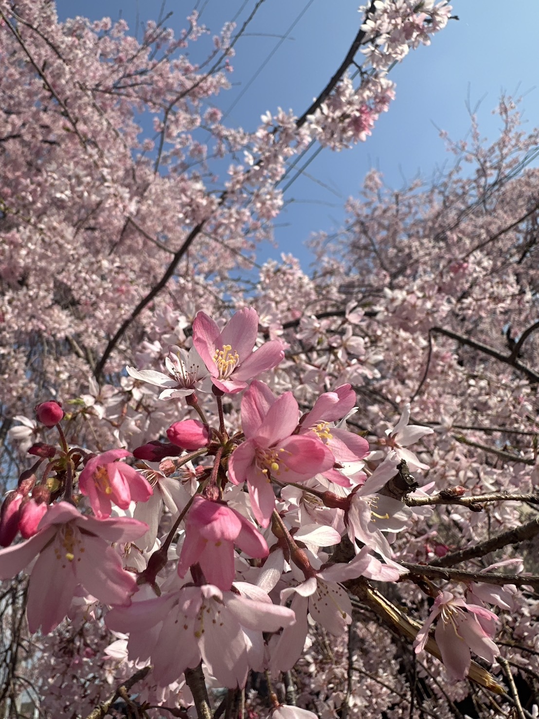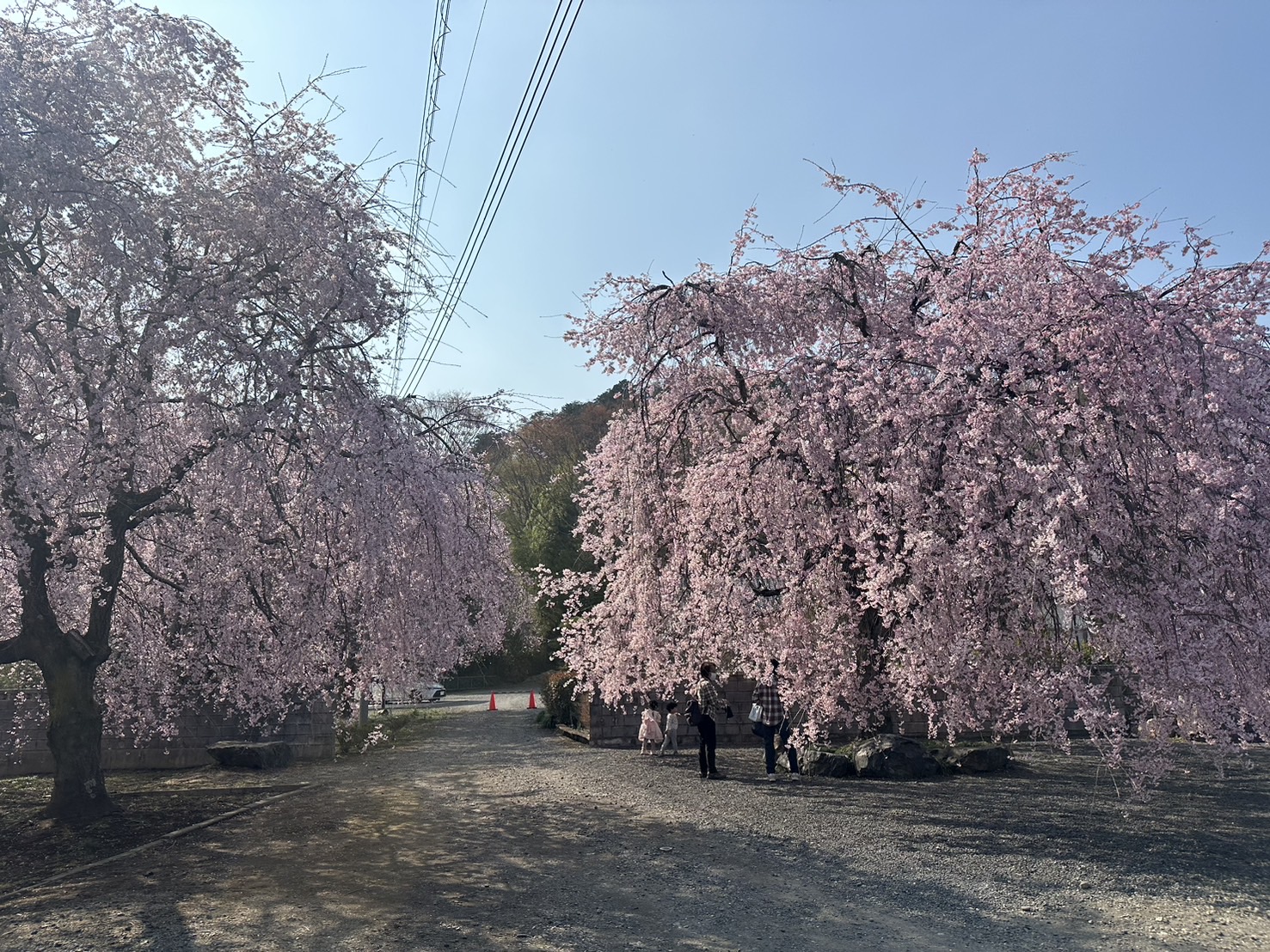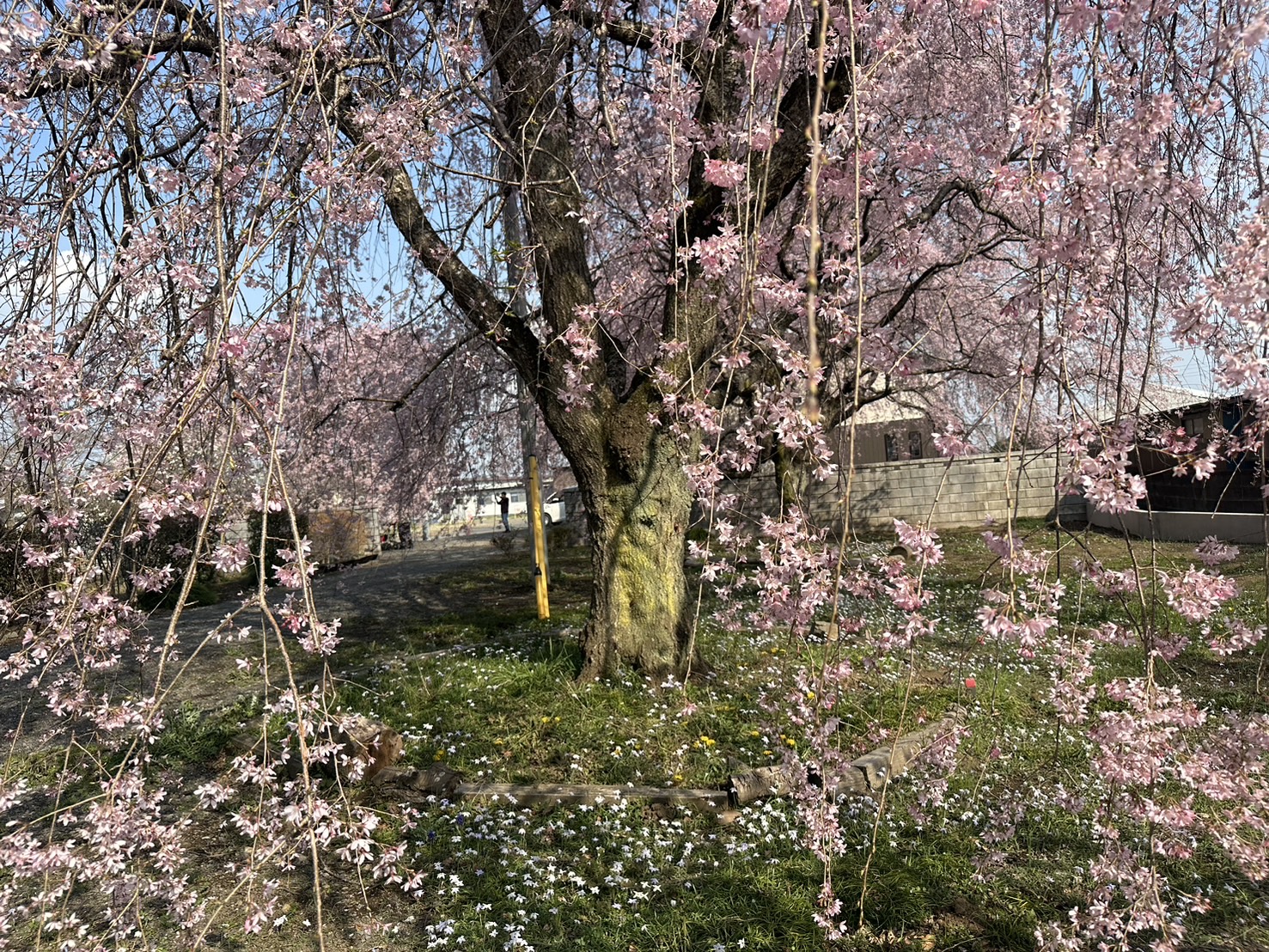 枝垂れ桜が満開で、道ゆく人が車を停めてお花見を満喫しておりました。